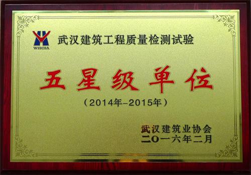 2013年我公司被武漢建筑業(yè)協會選為檢測試驗工作委員會副主任委員單位,2012-2017年連續(xù)五年被評為先進單位,2013、2015、2017年連續(xù)三屆被評為武漢市建設工程質量檢測機構五星級檢測單位。2017-20…